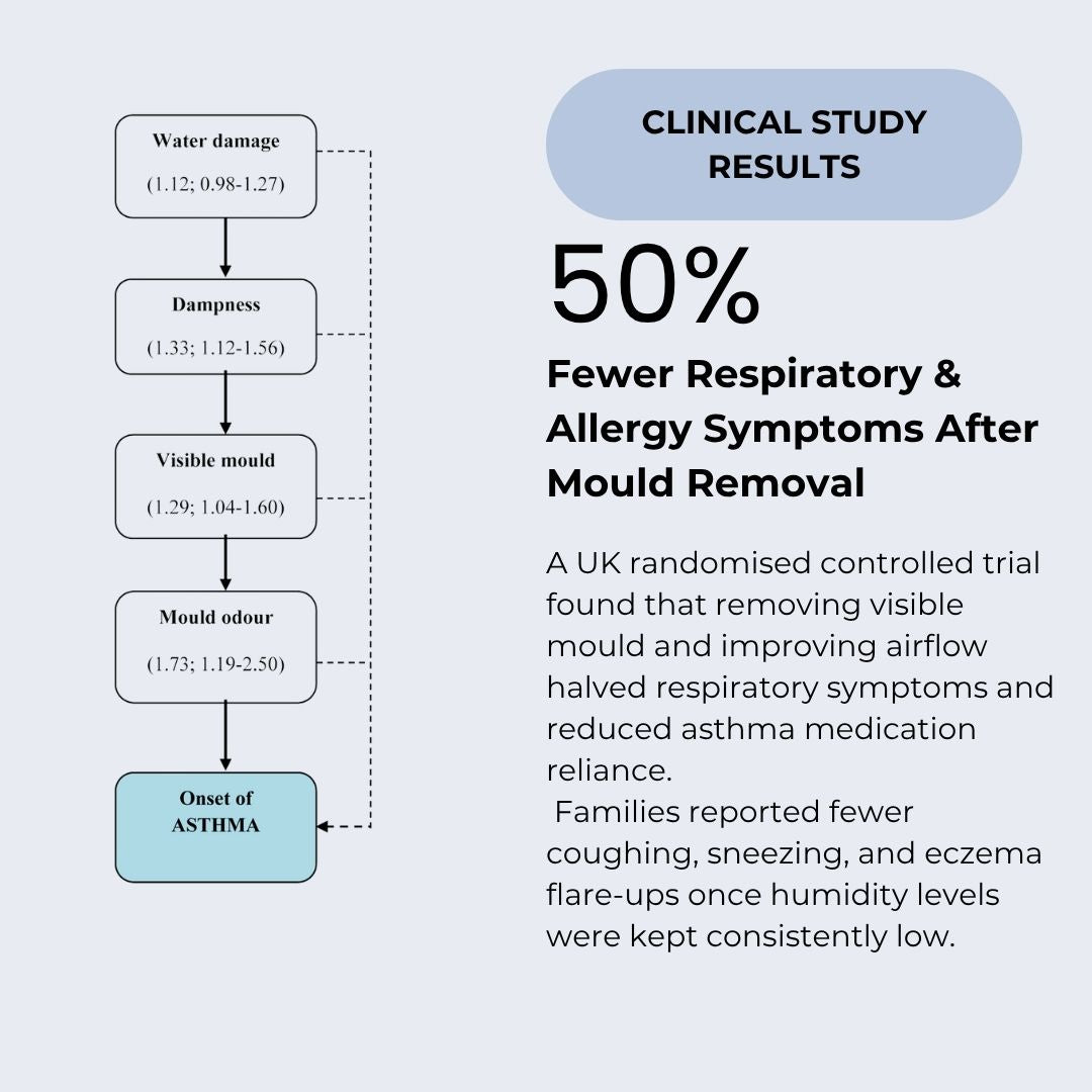 Eczema and mould sensitivity are growing problems in today’s modern homes — tightly sealed windows, indoor drying, and constant UK rain trap more moisture than ever.
